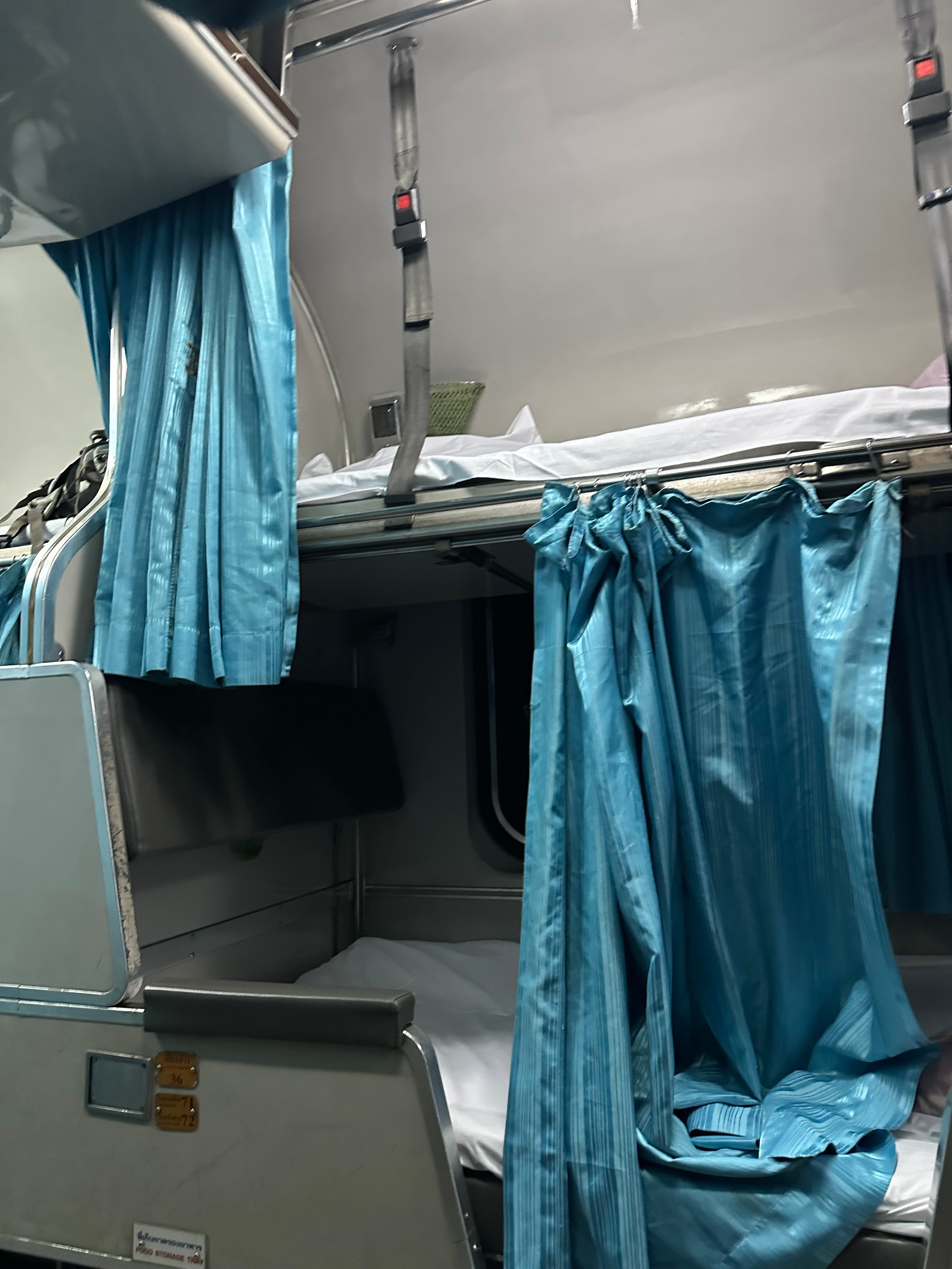 Anyway, after Bangkok it was off to Chiang Mai. We took the sleeper train. The last time I took a sleeper was from Prague to Krakow, in a private berth, which was pretty nice. Those are hard to book on the Bangkok-to-Chiang Mai route. We ended up in second class; still not bad. It meant a long row of beds, and a shared bathroom (which, the less said about that the better).