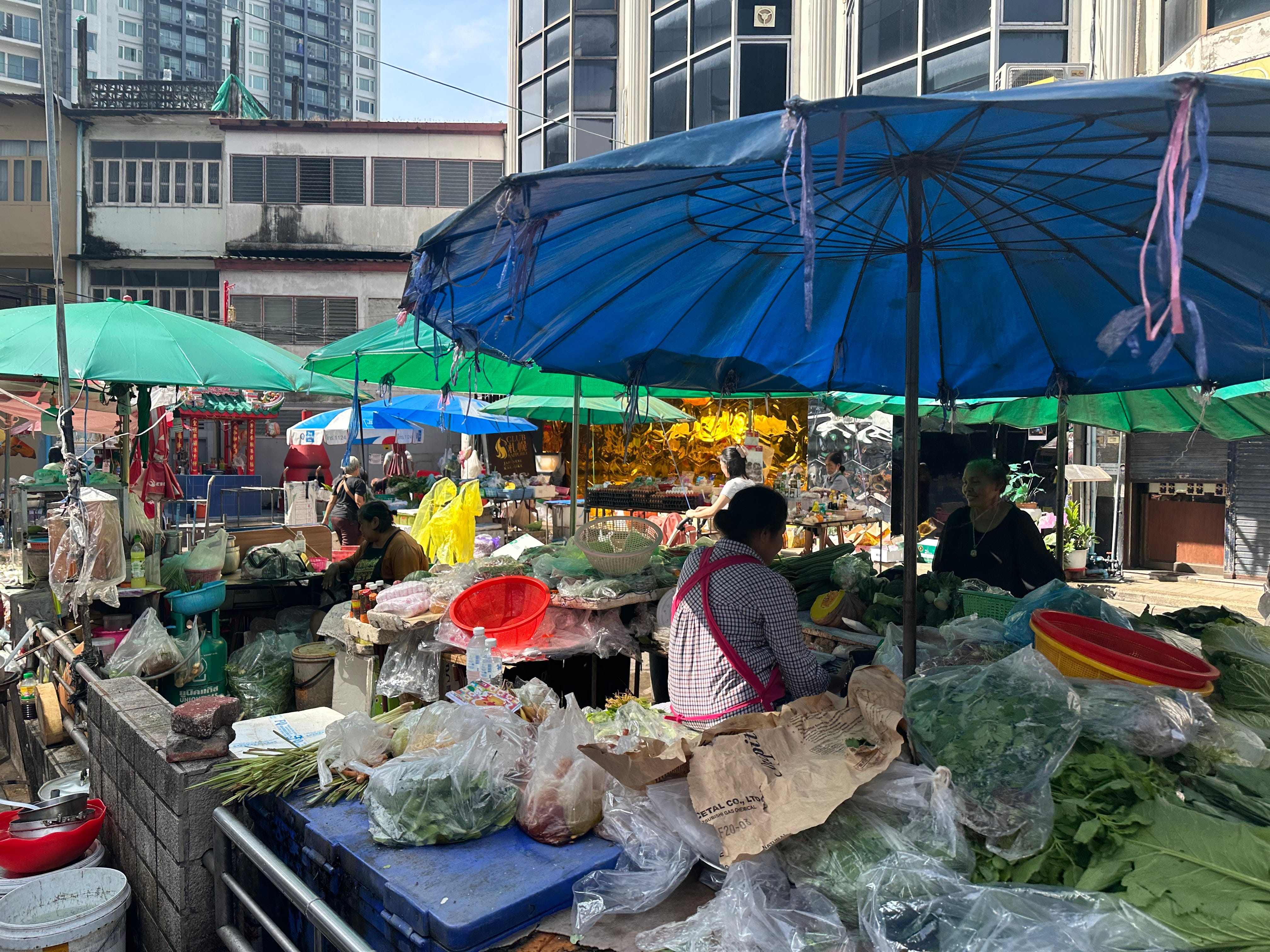 We found an open-air bar on the corner, and sat at the railing, drinking 90 baht Singha beers ($2.78 USD), watching the neighborhood breathe.