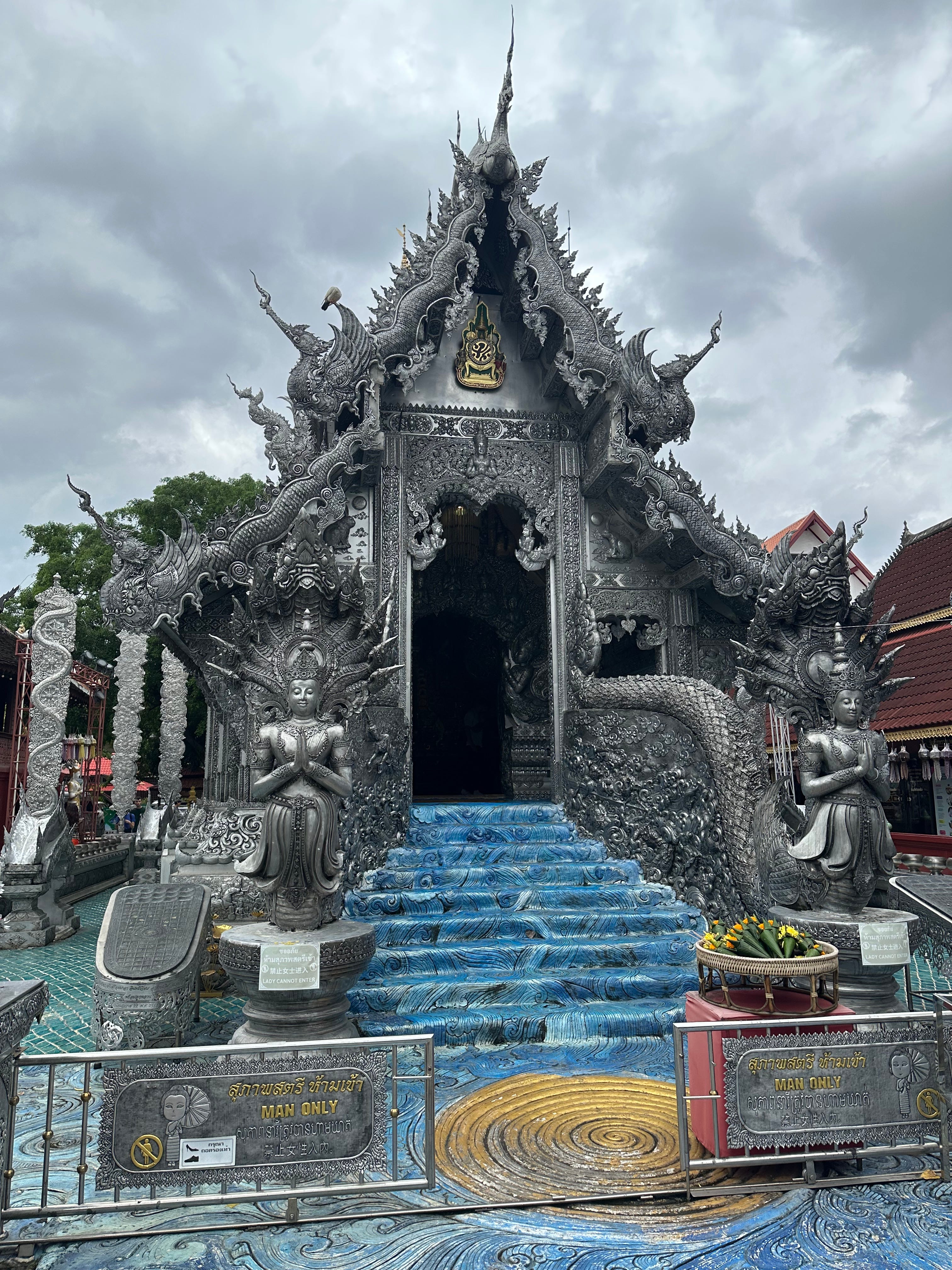 This was like moving from Manhattan to Brooklyn. Big buildings and frenzy to something more chill and neighborhoody. We visited Wat Sri Suphan, the silver temple (the only temple Cyn wasn’t allowed inside, on account of her being a woman).