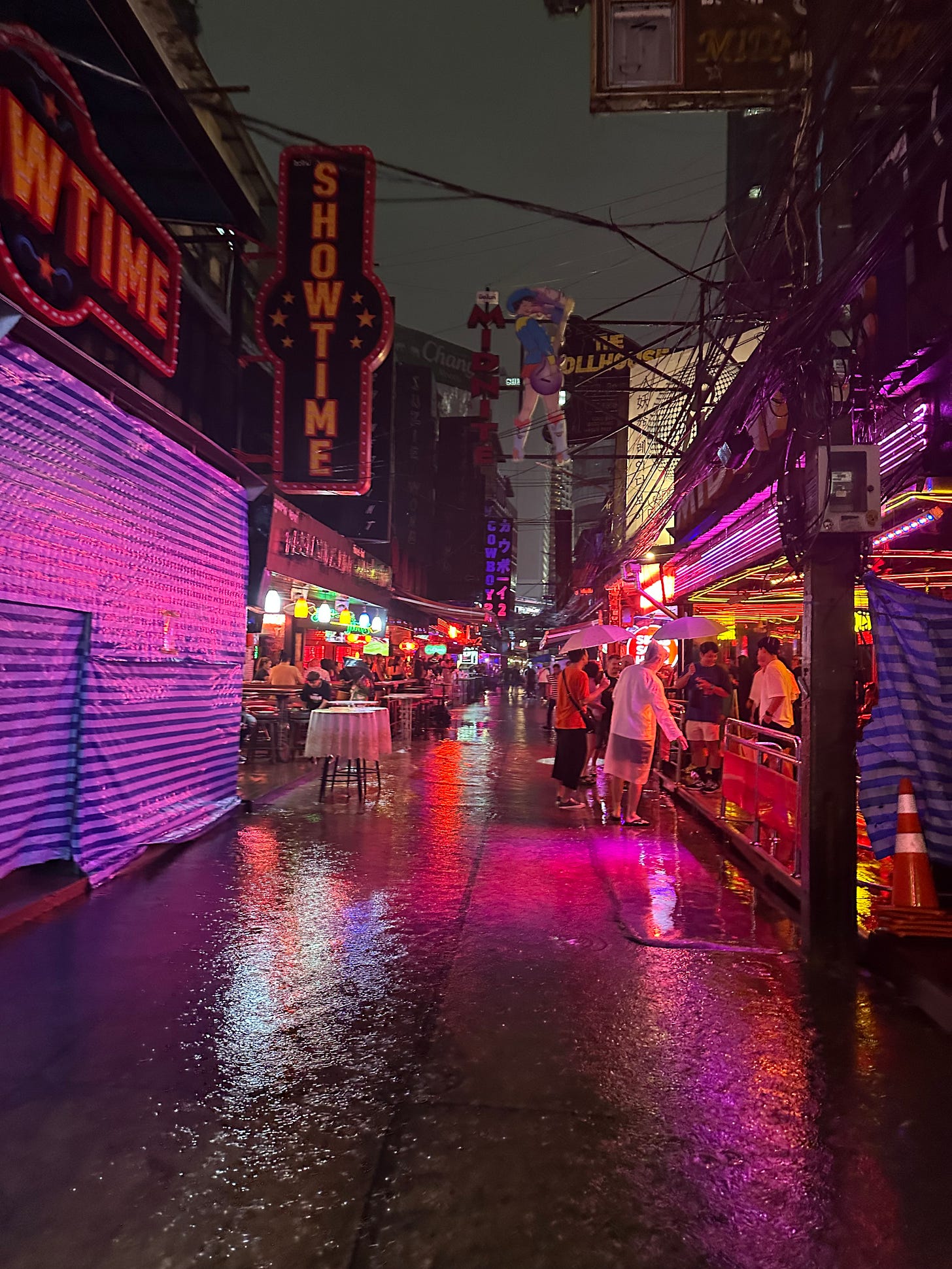 My favorite part of the trip, though, was Soi Cowboy. The red light district. It’s a short block, off the Asok station of the BTS. It was pure Blade Runner vibes, all neon and grime, except with less Harrison Ford and more white guys trying to amp themselves up to go into the girlie bars.